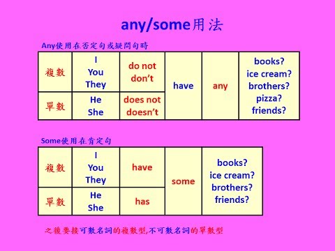 英文基礎文法 15 - any和some的用法 (Basic English Grammar - How to use "any" and "some" in sentence.)...