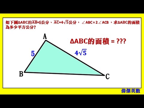 利用等腰三角形性質、畢氏定理、三角形面積公式來解題 歡迎大家加入會員,贊助此影音頻道...
